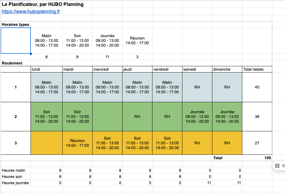 Tout cela semble sérieux, au moins en apparence, même si on s'interroge tout de suite sur la durée du cycle proposé. En effet, par défaut, on serait plutôt parti sur un cycle de 3 semaines pour 3 salariés, composé de 3 semaines types. Ainsi, le cycle final serait parfaitement équitable entre les salariés.