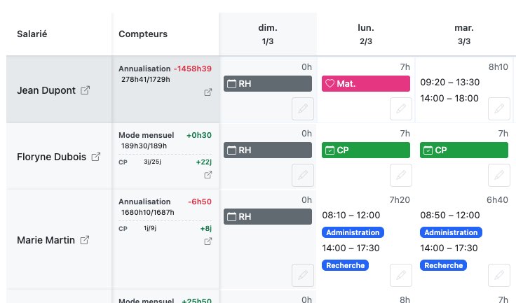 Gestion des plannings et du temps de travail pour vos salariés hors annualisation.
